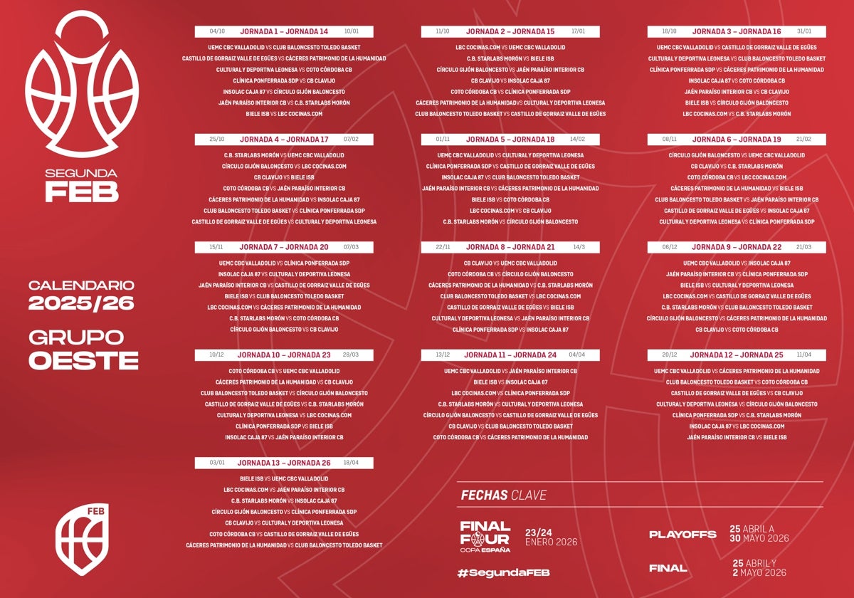 Calendario oficial del Grupo Oeste en la Segunda FEB 2025-2026